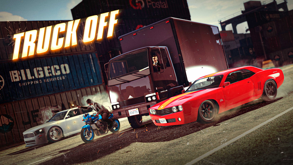 Truck Off asks a simple question: “How difficult could it possibly be to drop a truck off at the edge of the Grand Senora Desert in one piece?” The answer depends on how cut-throat the team of Attackers is. The game is afoot as soon as the Transporters get behind the wheel in Terminal’s industrial area.